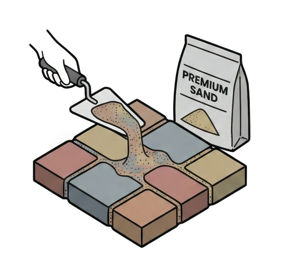 Your pavers look sharper immediately. This sand doesn’t just fill the joints - it blends with the color of your stone so everything looks clean, even, and brand new.